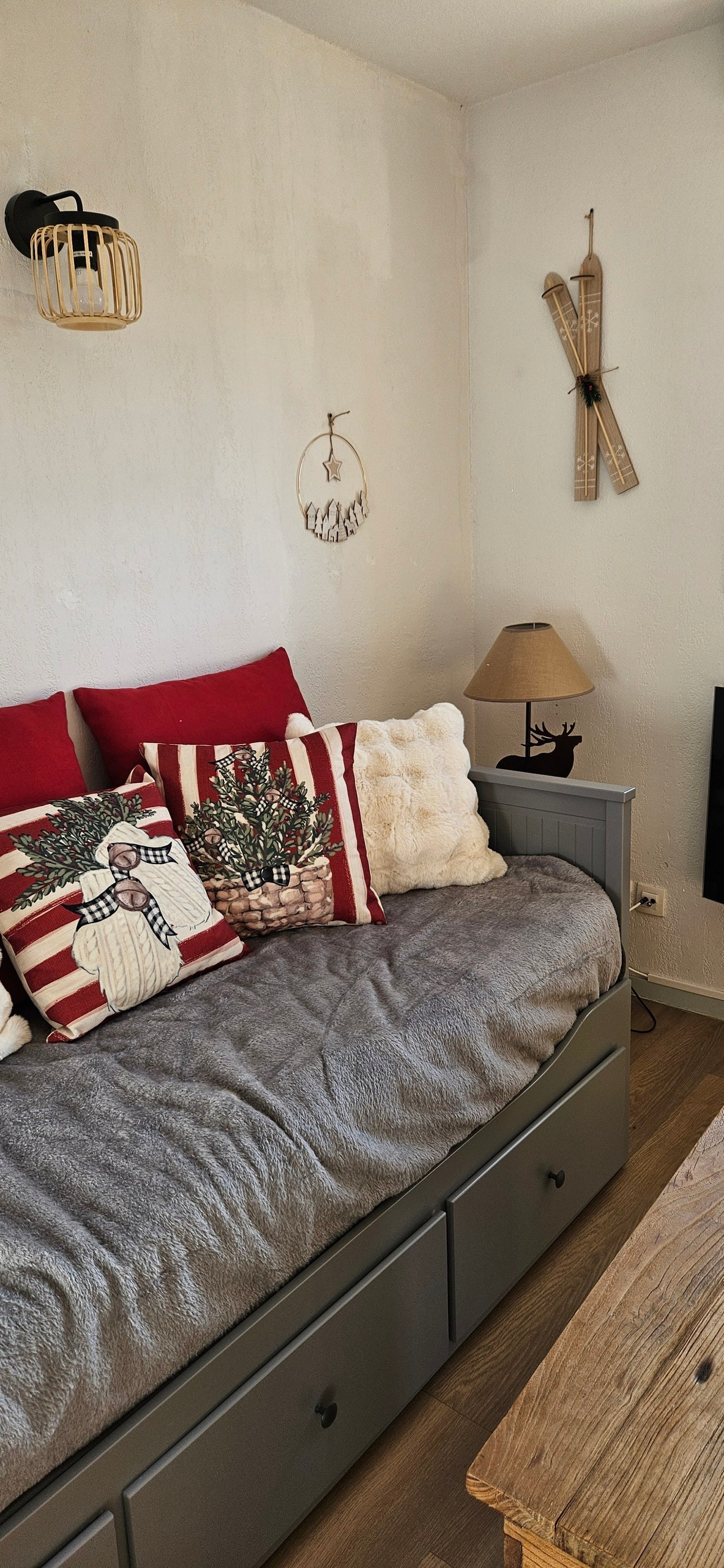 Encantador estudio con terraza de 9 m2 con vistas a la montaña, situado en la 1.ª planta de la residencia ROYAL MILAN (clasificada con 3 estrellas). Residencia reformada en 2017, idealmente situada en el pueblo (zona termal/a 200 metros de las telecabinas). Numerosas zonas comunes: acogedor salón, chimenea, billar, futbolín, zona de juegos, pequeño gimnasio, sauna abierta durante el horario de recepción, piscina al aire libre (16 de junio a 17 de septiembre). En el sótano: lavandería de pago con secadora, guardaesquís, guardabicicletas.