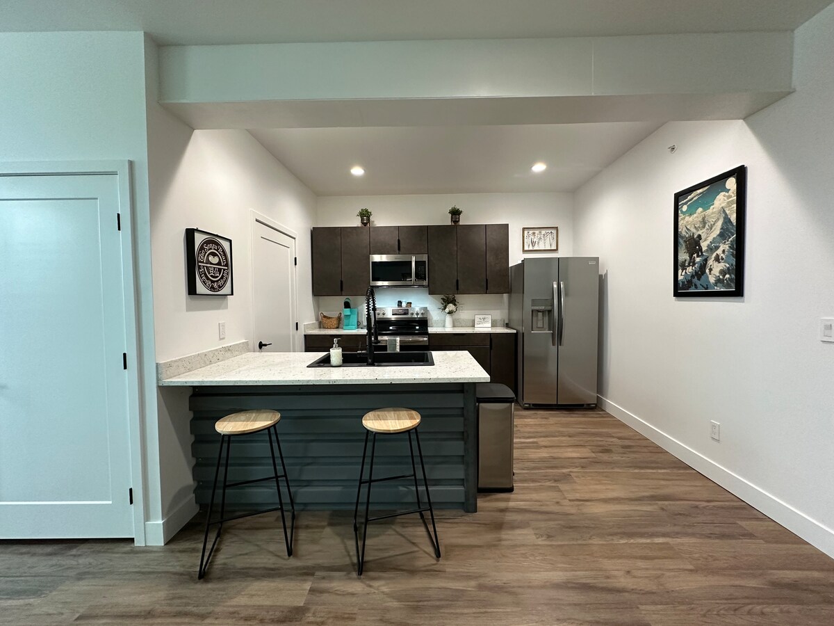 This upscale mid-century modern townhome is just the stay you need! Fully stocked, ready to sleep 6, this location has everything for a quiet night in or to hit the town. Take advantage of the full kitchen, smart TV, and quaint patio with seating. We're pet friendly with off-street parking too! We're right off HWY 160 and just 5 mins from the university, hospital or casino, and 10 mins to Walmart or downtown night life.