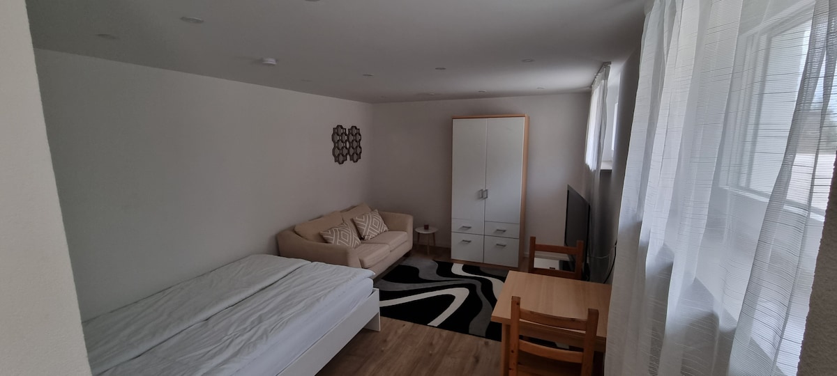 Nuestro apartamento de 2 habitaciones de diseño moderno y totalmente amueblado tiene capacidad para 2-3 personas. Las habitaciones están diseñadas abiertas, excepto el baño, por lo que hay un ambiente agradable. Amplia sala de estar con sofá cama, dormitorio, cocina totalmente equipada, así como un baño con todas las comodidades. Además, hay wifi gratuito disponible en todas las habitaciones, así como un televisor LED. El apartamento tiene su propio acceso, para que puedan disfrutar de tu estancia sin ser molestados.