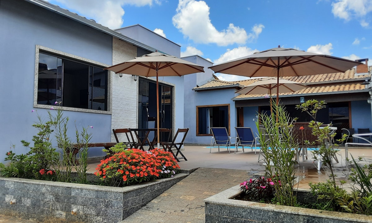 Elegante chalet en las montañas, independiente, privado y rodeado de mucha vegetación, para parejas que buscan tranquilidad, comodidad y conexión. La decoración rústica con delicados toques crea un ambiente acogedor e íntimo, ideal para momentos para dos. Lavras Novas tiene ese aire fresco y romántico de montaña, con noches frías (perfectas para el vino), senderos, cascadas y puestas de sol inolvidables. Aquí puedes relajarte en un ambiente creado con amor, para reducir la velocidad y vivir en el presente con tus seres queridos.