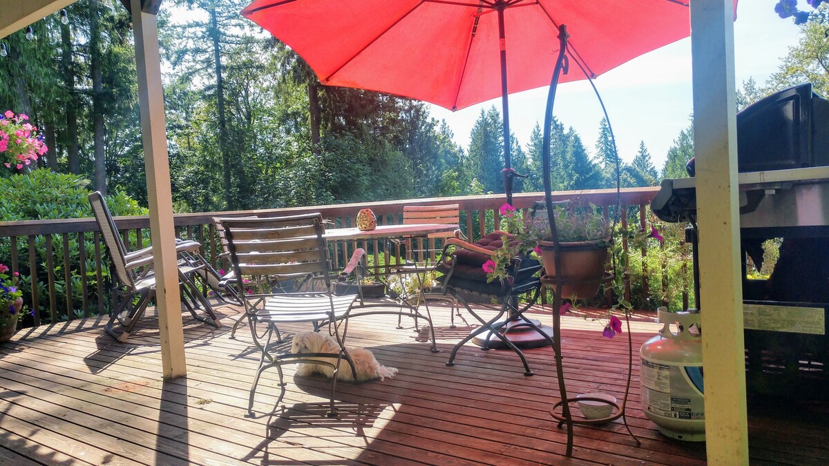¡Relájate y recarga energías en nuestra casa de huéspedes totalmente remodelada! Disfruta de la serenidad de la hermosa naturaleza, con entrada privada, terraza y chimenea. En primavera, duérmete con el sonido de las ranas croando en el estanque. Hay abundantes aves, ciervos y conejitos. La propiedad tiene acceso directo al sendero del gasoducto Tolt, ideal para pasear o montar en bicicleta de montaña. A solo 10 minutos del centro de Duvall y Carnation, con numerosas tiendas, restaurantes y parques. Fácil acceso a la autopista 2 y la I-90, que ofrecen senderismo y actividades recreativas.