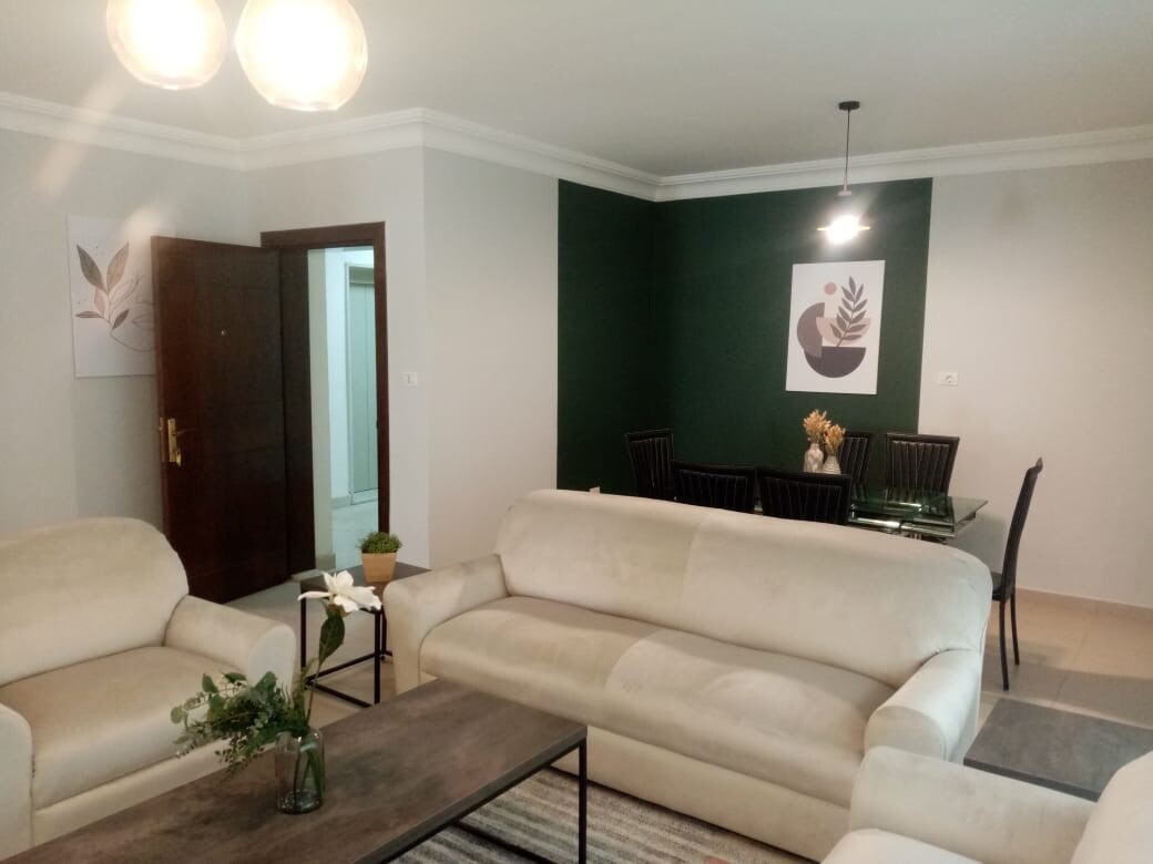Alójate con estilo en este apartamento contemporáneo RECIÉN amueblado y TOTALMENTE equipado, y disfruta de: > Habitaciones amplias y luminosas. > Vistas privadas y sin obstáculos de la ciudad. >Los mejores restaurantes/cafeterías, tiendas de comestibles y mucho más, todo a poca distancia a pie. > Ubicación dinámica, cerca de todas las carreteras principales de la ciudad. - El centro de la ciudad está a 10 minutos en coche :) Servicios: - Wifi de alta velocidad. - TV inteligente. - Bañera. - Aire acondicionado. - Aparcamiento gratuito Esta es una opción ideal para familias o amigos que buscan disfrutar de una cómoda estancia de cinco estrellas en Amán.