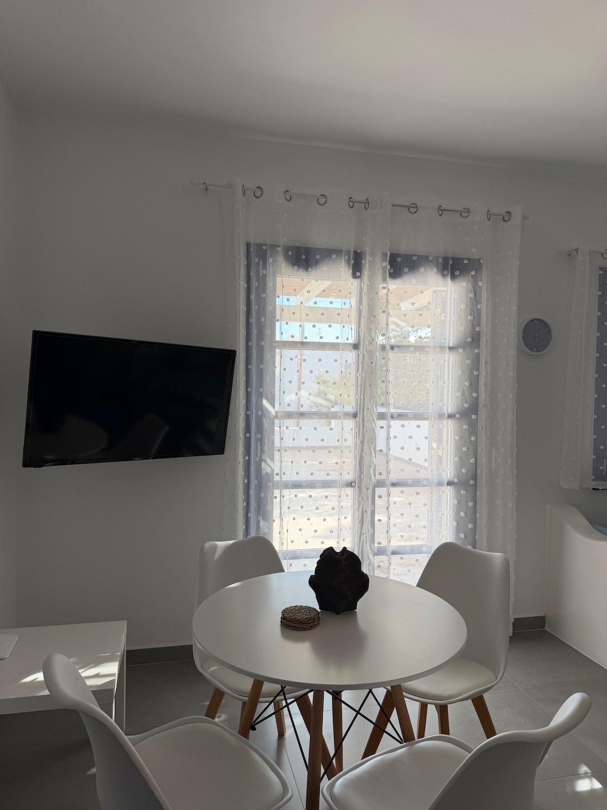 Casa entera de 50 m² completamente renovada en 2020. Lugar bonito y tranquilo adecuado para toda la familia, grupos de amigos y parejas. Está a 50 metros del puerto de Katapola y a 3 minutos de la parada de autobús y taxi. También está a 100 m de la playa de Kato Akrotiri.