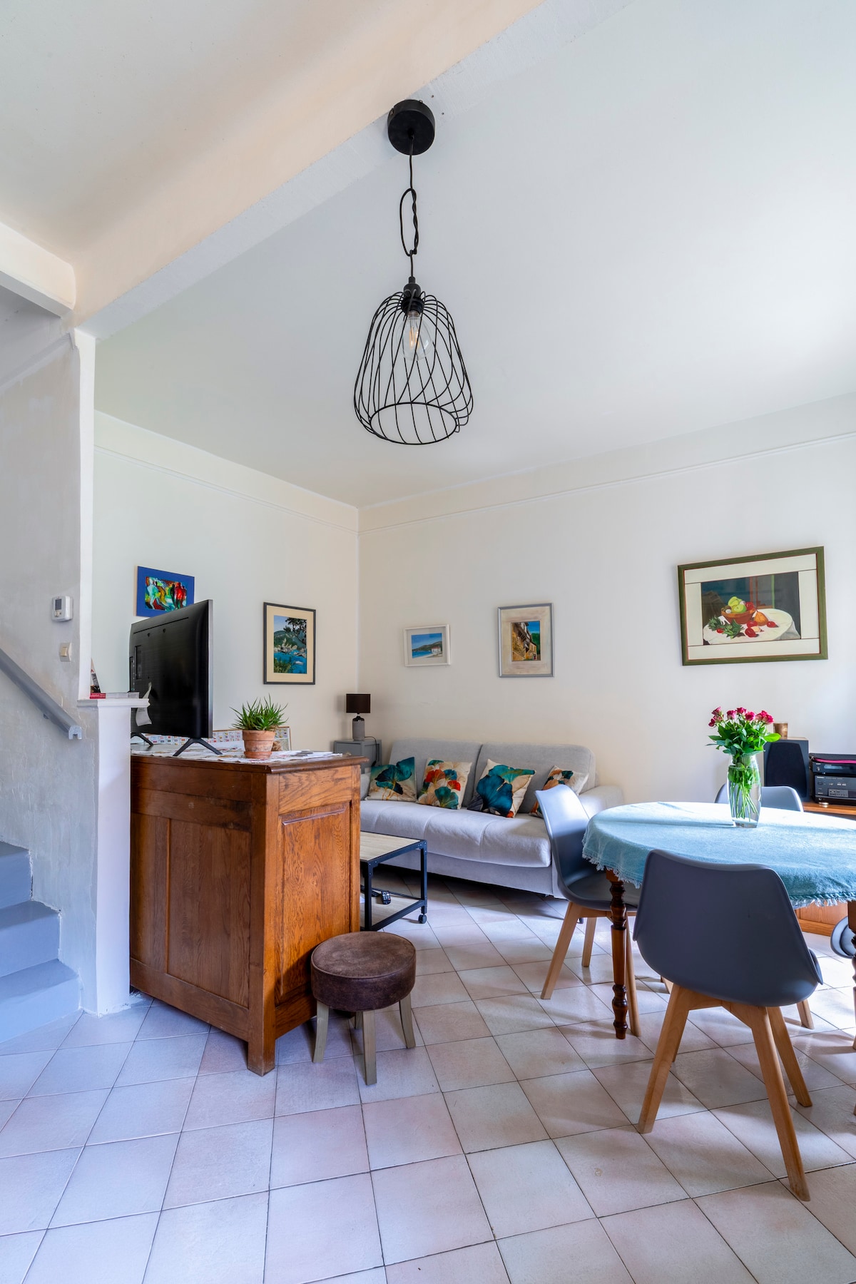 Casa adosada de 100 m² totalmente equipada y con aire acondicionado, distribuida en 2 plantas que consta de 2 dormitorios y una sala de estar abierta a una cocina equipada. Cada piso tiene un pequeño balcón orientado al sur que da a un patio interior. La casa está muy bien situada a solo 5 minutos andando del centro de la ciudad y cerca de todos los servicios (tiendas, farmacia, tabaco...). La estación de tren se encuentra a 10 minutos. Pequeño +: aire acondicionado en cada habitación