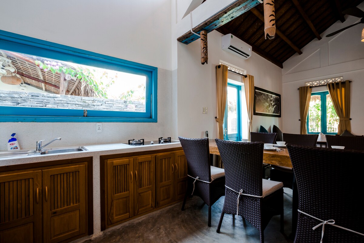 Bienvenido a nuestra villa rústica pero moderna en el corazón del histórico Hoi An, donde el encanto tradicional se une a la comodidad moderna. El Ocean Bungalow está diseñado de acuerdo con la arquitectura rústica, antigua y pacífica de Hoi An, mezclada con la naturaleza fresca con muchos árboles verdes. Es un lugar ideal para relajarse y descansar completamente lejos del bullicio de la ciudad. * Zumo de frutas de bienvenida a tu llegada. * Desayuno gratuito con zumo de frutas/té/café/bebidas todos los días.