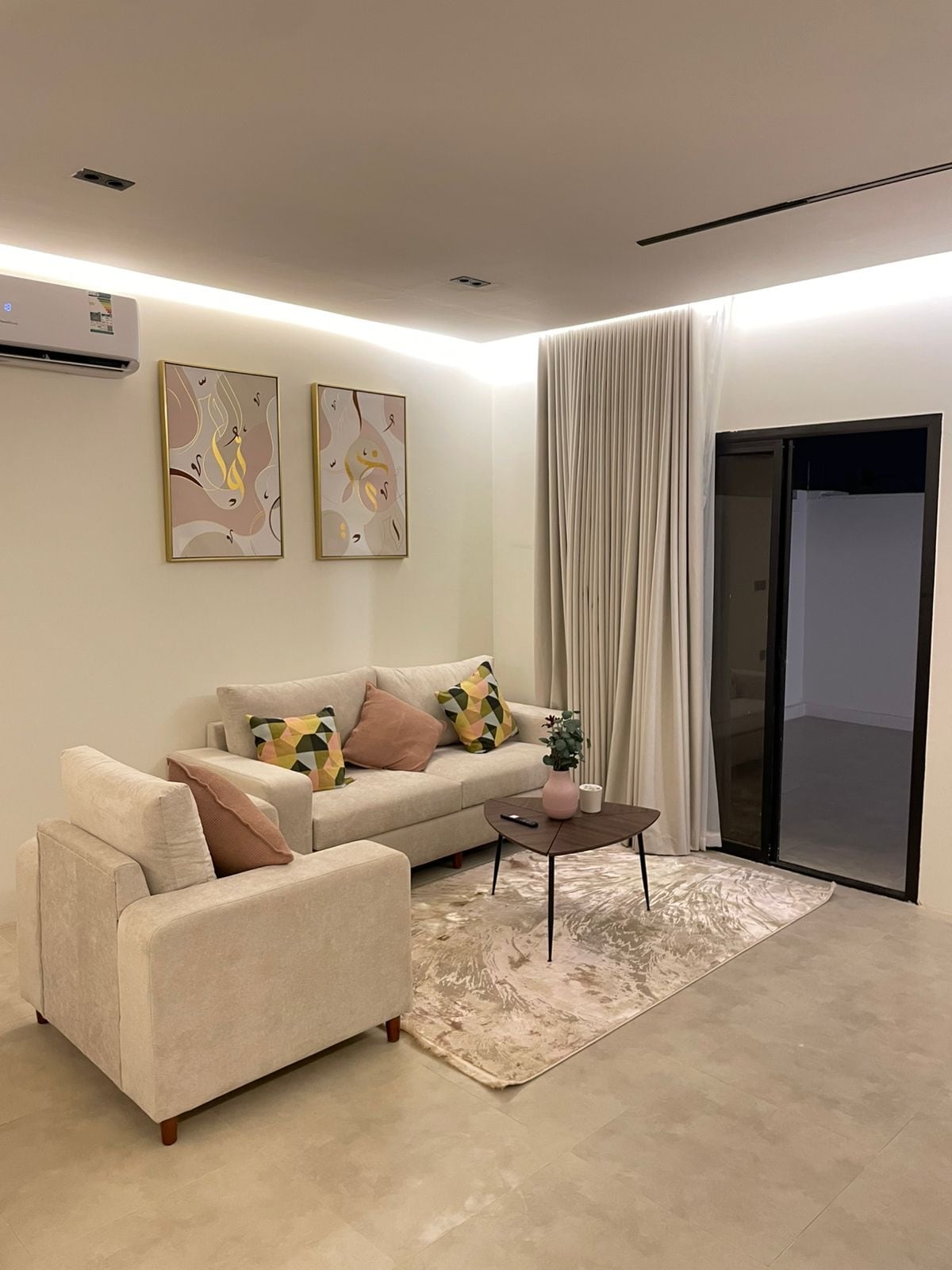 Apartamento de lujo al norte de Riad Diseñado para ser diferente y elegante con un jardín al aire libre, Tiene total privacidad y entrada automática . Ubicación estratégica 📍 Ubicado a una distancia : A 15 minutos en coche de la temporada de Riad.🌟 A 10 minutos del parque Riyadh. 🛍️ A 13 minutos del Centro Financiero King Abdullah. 🏙️ A 18 minutos del aeropuerto internacional King Khalid.🛫 Consta de una habitación americana, salón, cocina y jardín privado al aire libre.