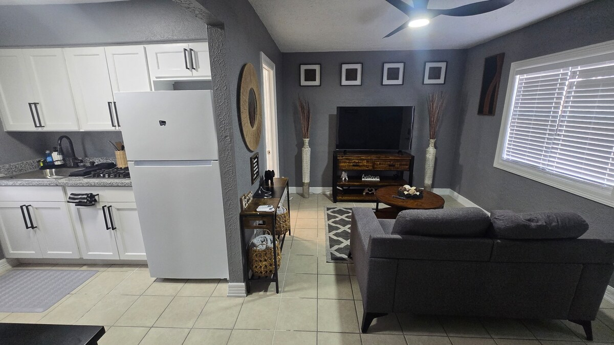 ¡Hola! ¡Tendrás tu propia entrada privada a un dormitorio privado y baño completo + armario en nuestra moderna casa adosada en una comunidad cerrada! Esta habitación está conectada y comparte una pared con el resto de nuestro hogar. No hay cocina. Estamos a poca distancia a pie del centro de la ciudad, Minute Maid Park, BBVA Stadium, George Brown Convention Center, los mejores bares de Houston, cafeterías y restaurantes. Estamos muy cerca de todas las carreteras esenciales, lo que significa Ubers baratos a la mayoría de los lugares.