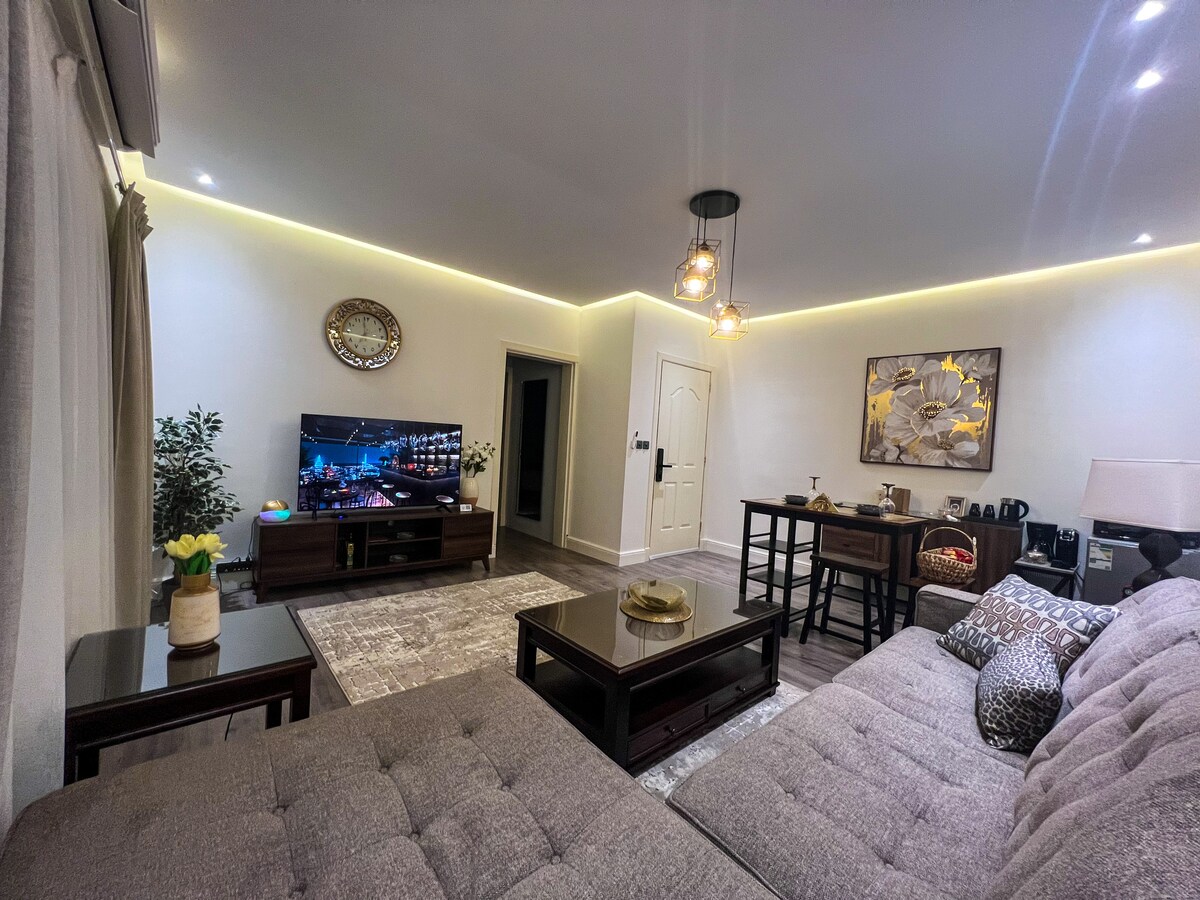 Este apartamento limpio y cómodo es ideal para parejas, viajeros solitarios o huéspedes de negocios que buscan una estancia limpia y tranquila. Diseñado para la comodidad, el alojamiento está equipado con un cómodo sofá Bella de Mutlaq Furniture, una red wifi de alta velocidad, un televisor inteligente y una cafetera Nespresso. Acceso de los huéspedes Fácil acceso al apartamento de arriba con cerradura digital de la puerta Otros aspectos a destacar Este es un edificio residencial y un barrio tranquilo. Por favor, ten en cuenta los niveles de ruido al llegar y salir. No se permiten eventos ni fiestas en absoluto.