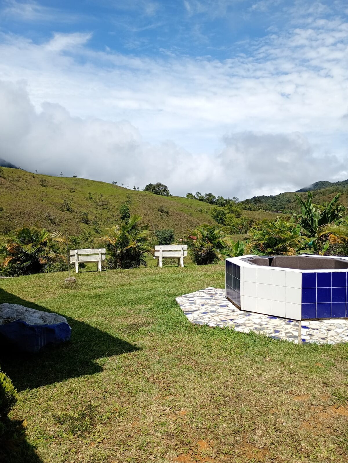 Bienvenido a tu escapada a la montaña en Dagua A solo 45 minutos de Cali, esta espaciosa cabaña de 5 dormitorios es ideal para grupos, familias o retiros. + Piscina privada/jacuzzi + Chimenea + vistas a la montaña + Campo de fútbol, barbacoa + Wifi, cocina completa, estacionamiento seguro Relájate junto al fuego, sumérgete en el jacuzzi bajo las estrellas o disfruta de un partido en tu propio campo de fútbol. Tiene capacidad para 28 personas cómodamente. Perfecto para los amantes de la naturaleza, los nómadas digitales y las escapadas de fin de semana. ¡Reserva ahora para el mejor retiro en grupo!
