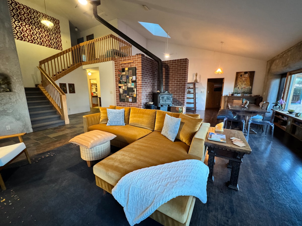 **¡Recientemente renovado/redecorado!** Esta casa fue llamada «The Ranch House» por su arquitecto Don Jacobs. Esta cabaña de los años 70 actualizada es una escapada al bosque con sensibilidad moderna. La casa está rodeada de secuoyas y tiene 2 grandes terrazas, 1 con chimenea de propano con amplios asientos, la otra con jacuzzi. El salón tiene ventanales con vistas al bosque y estufa de leña Morso. Se anima a los huéspedes a disfrutar de las rutas de senderismo, piscinas y servicios al aire libre. La casa tiene capacidad para 4 personas y cuenta con internet de fibra óptica.