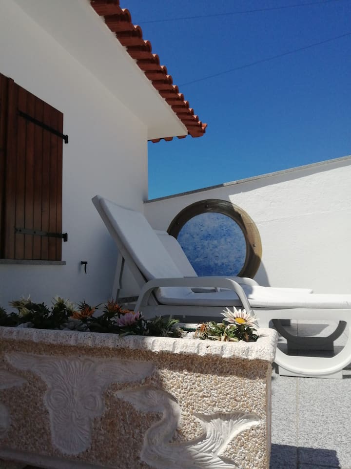 Casa insertada en un espacio natural. La decoración respeta el ambiente y los espacios exteriores son amplios. Ideal para todos tipo de viajantes que buscan disfrutar de la naturaleza y relajar con un clima agradable. Venga y disfrute de nuestra hospitalidad en un ambiente maravilloso. Durante la reserva, la piscina es privativa de los clientes. Portugal:Caminha- 10',Viana Castelo- 25', Porto- 55', Braga-50' España:Guarda- 30',Baiona- 40',Vigo- 50',Santiago C.- 90