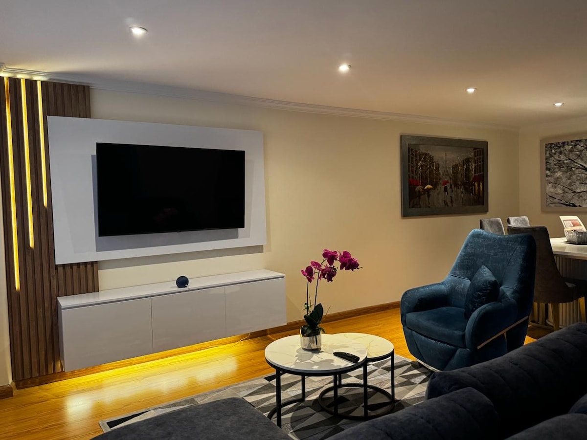 A stylish brand new place to stay perfectly comfortable for a short or long period of time. It has clearly everything you might need for having a unique and unforgettable experience overlooking the beautiful mountains and view of Bogota during the day and night. A great queen size bed, a sofa-bed, excellent bathroom, and for those that likes cooking, it has all sort of gadgets for facilitating so.Nearby you will find the best clubs such Theatron, among many others, grt-bars and shopping spots.