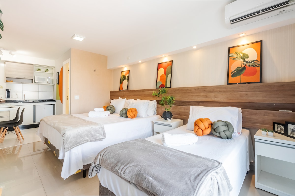 Apartamento nuevo, de estilo contemporáneo, de alto nivel y muy bien ubicado, con una vista privilegiada a Allianz Parque. Junto a centros comerciales, varios negocios, medios de transporte, parques, atracciones turísticas y edificios de negocios. El estudio está completo, con una cómoda cama queen, TV inteligente e Internet. Cocina con todos los utensilios, encimera, nevera y microondas. Con estacionamiento (rotativo). Cerca de todo, acogedor, perfecto para experimentar momentos fantásticos.