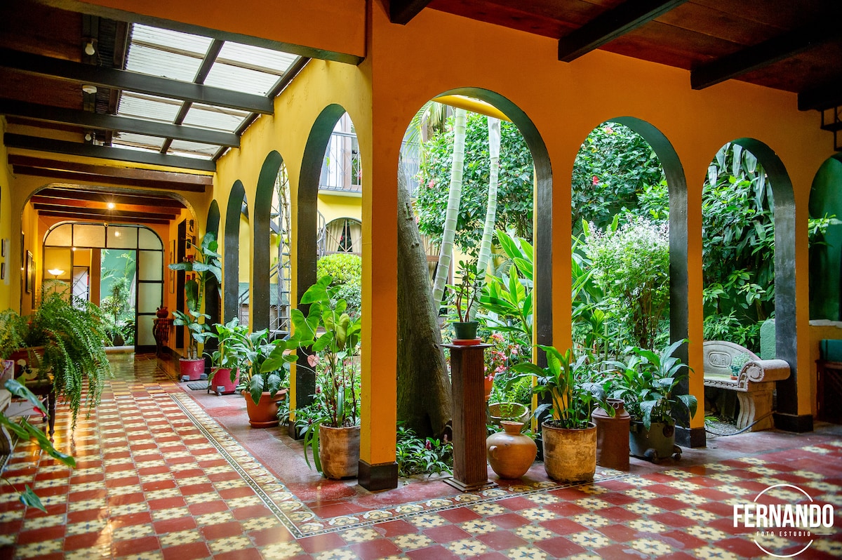 A Hidden Garden Oasis just 4 blocks from the Central Park in Antigua. You may not want to leave! This ia a single Hotel Room, Sleeps 2. Comes with 1 secure parking space. Best WiFi in Antigua. You'll be living in a lush & expansive garden with a view of the Volcano Agua that can't be beat. 6 other Casitas share this beautiful setting. But be careful! This is the property that tempted me to make Antigua my home!