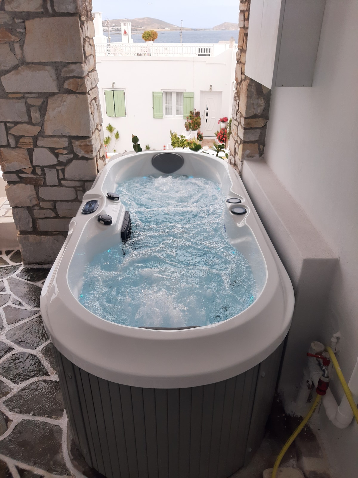 Vista completa al mar, jacuzzi | Enosis Apartments Poseidon