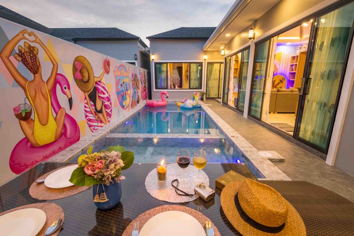 Private Pool Villas with Free Tuk-Tuk – 7 mins to Ao Nang Relax in your own private pool villa in a peaceful area of Ao Nang, just 7 minutes from the beach with our free tuk-tuk service — no need for scooters or taxis. Perfect for families and groups, each villa offers space, privacy, and a calm setting while staying close to restaurants, islands, and day trips. We are a boutique collection of 6 fully licensed villas, managed on-site by our friendly team to ensure a smooth, comfortable stay.