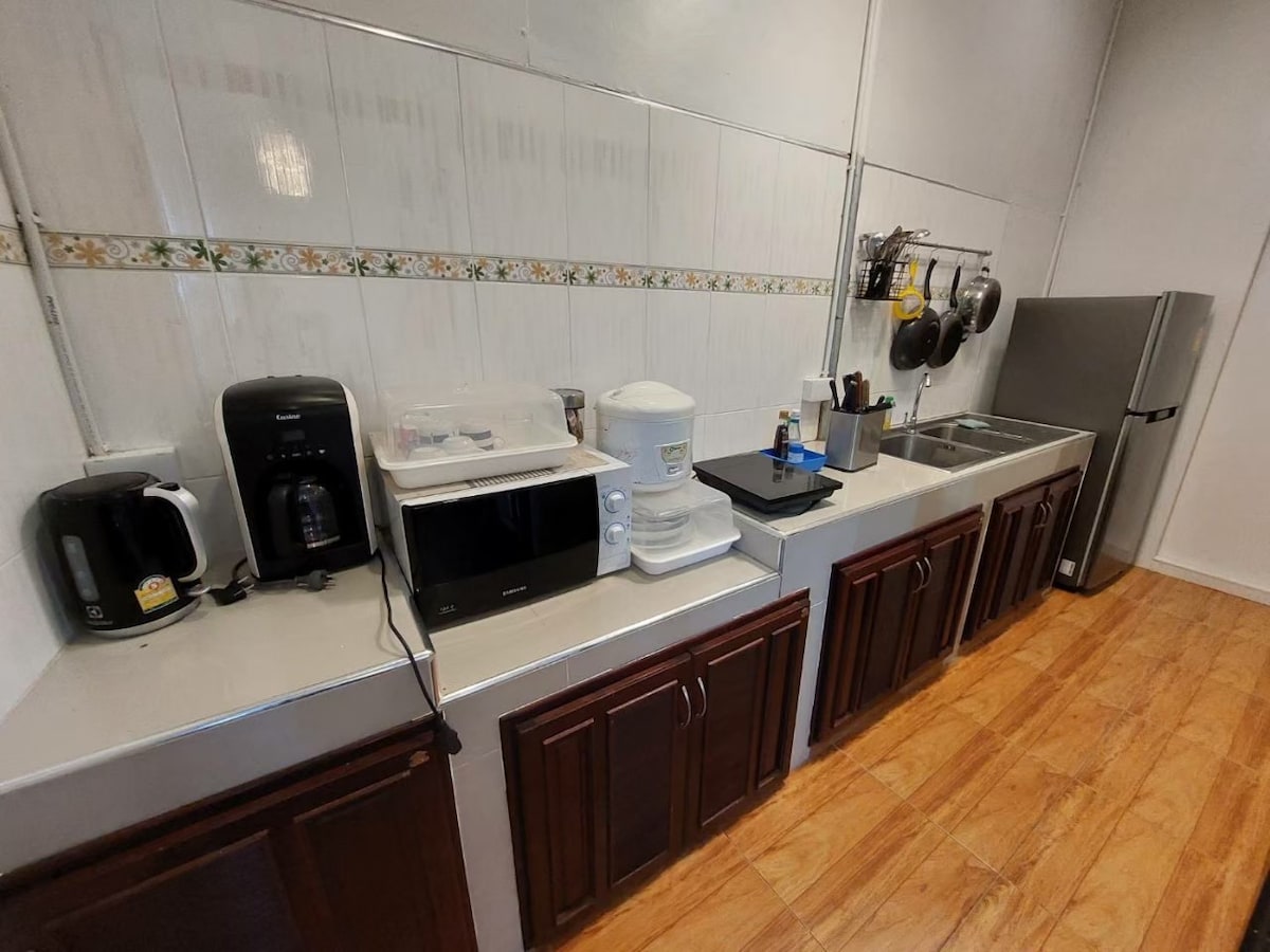Hay un descuento mensual del 50 % :) Bienvenido a nuestra acogedora casa de madera en Krabi Town , enclavada en medio de la serena belleza de la naturaleza, nuestro refugio único es más que un lugar para alojarse: es un refugio cálido y acogedor que se siente como en casa. Nuestra casa hecha a mano es el resultado de un arduo trabajo, diseñada y construida por mi padre y por mí. El uso de madera natural refleja nuestro compromiso de crear un ambiente acogedor y cómodo.