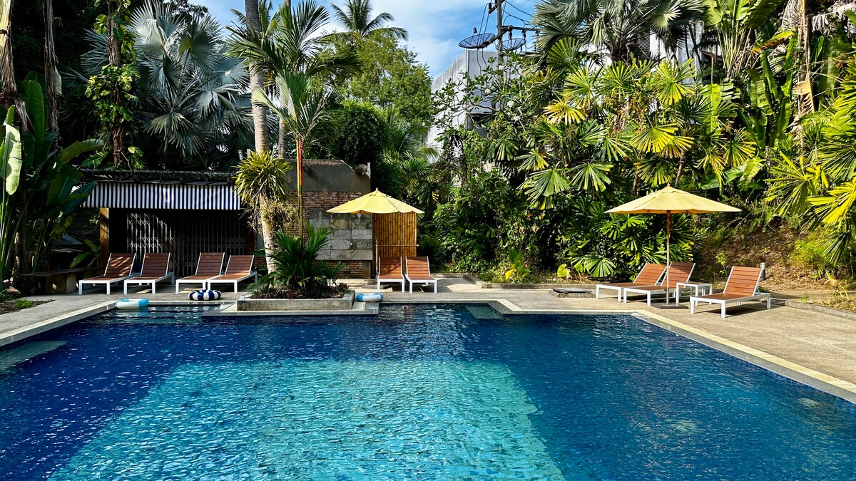 Villa tailandesa con piscina, todo preparado con servicios ecológicos, una oportunidad de escapar de la congestionada ciudad y relajarse rodeada de innumerables árboles. Servicio de traslado gratuito a la playa de Aonang y a los lugares cercanos. Desayuno, almuerzo, cena disponible. A 4 km de la playa de Aonang A 400 m de supermercados y tiendas de conveniencia. A 30 minutos del aeropuerto de Krabi La casa tailandesa está hecha con madera para la naturaleza. Te encantará la madera y sus componentes únicos. Abre la puerta de la piscina frente a la habitación con cocina, terraza a la parrilla y asientos para amigos o familiares.