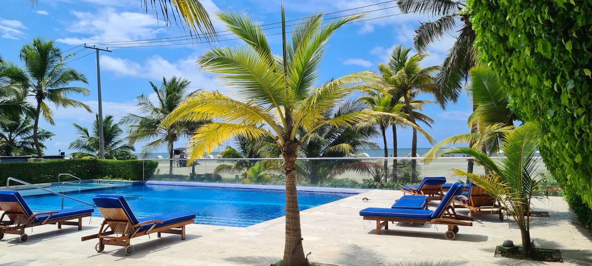 Exclusivo apartamento en edificio frente a la playa con acceso directo a la arena. A solo 7 minutos del centro histórico de Cartagena, Ideal para disfrutar del Caribe Dormitorio con cama Queen + sofá cama (180x110 cm) en la sala 2 baños completo Balcón privado con hamaca 2 piscinas (una frente al mar) jacuzzi y sauna Gimnasio, zona infantil y parqueadero privado WiFi 300 Mbps – ideal para trabajo remoto Cerca de restaurantes, bares y supermercados Corral para bebé disponible bajo solicitud.