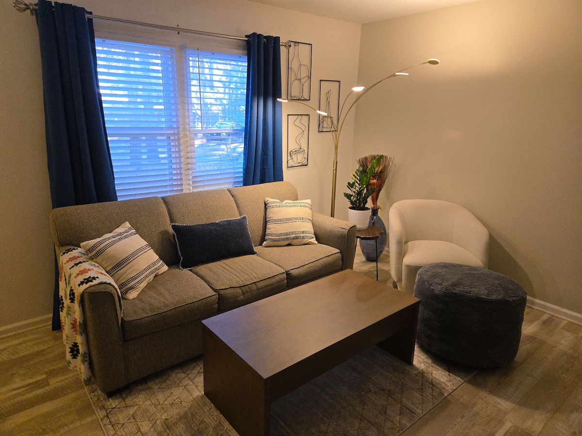 ¡UN BUNGALO DE 5 ESTRELLAS QUE TIENES QUE VER! Este elegante espacio está recién reformado. Electrodomésticos, suelos, cocina y muebles nuevos. Está a menos de 100 pies de tiendas, restaurantes y bares en el centro histórico de Apex. ¡No encontrarás una ubicación mejor! Este espacio cuenta con un diseño boho/moderno de mediados de siglo. LAVADORA y SECADORA incluidas en la unidad. DOS televisores inteligentes de Amazon con varios servicios de streaming. Capacidad para 3 adultos o 2 adultos y 2 niños en un sofá cama.