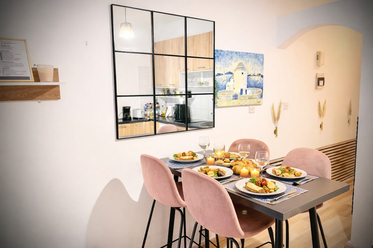 Ubicado detrás del centro comercial King Avenue, nuestro acogedor y luminoso apartamento hará que tus vacaciones sean más especiales. Amplio salón con sofá y comedor, máquina Nespresso, televisión inteligente, colección de DVD, pequeña biblioteca, estación de trabajo, cocina totalmente equipada, terraza con tumbonas, nuestro apartamento en el piso superior tiene una ubicación increíble, cerca de la playa, el puerto, los sitios arqueológicos y varios restaurantes y bares. La estación principal de autobuses está a poca distancia, el casco antiguo es fácil de acceder caminando y el gran supermercado a 5 minutos.