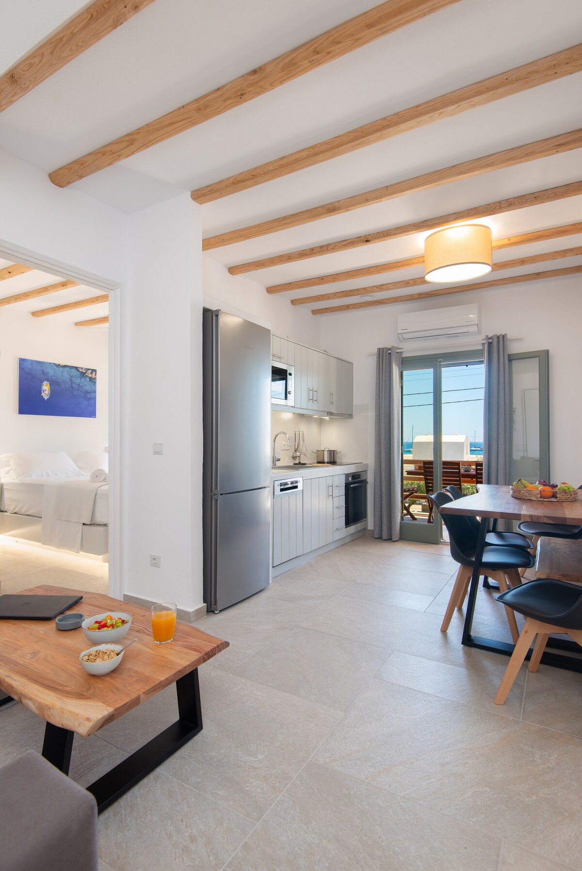 Bienvenido a À La Plage Residences 1, un moderno apartamento de 51 metros cuadrados cuidadosamente diseñado ubicado en el primer piso, a solo 47 pasos de las arenas doradas de la playa de Platis Gialos. Con dos acogedoras habitaciones y una amplia sala de estar de planta abierta, este apartamento puede alojar cómodamente hasta 6 huéspedes. Es la opción ideal para familias, parejas o grupos que buscan una escapada relajante a la costa, que ofrece la combinación perfecta de comodidades modernas y comodidad frente a la playa.