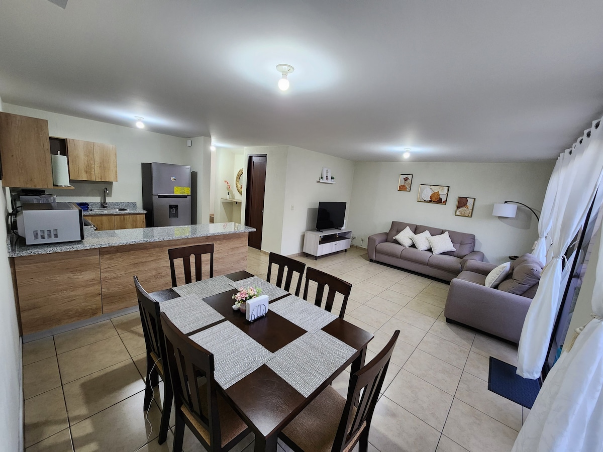 Disfruta de un espacio tranquilo, cómodo, acogedor, seguro con vigilancia 24/7, y todo lo necesario para que tu experiencia sea placentera, en una de las residenciales más exclusivas del área metropolitana. Espacio para 5 ó 6 personas, 3 parqueos disponibles, aire acondicionado en sala y 2 dormitorios, cocina completamente equipada. Además cuenta acceso a piscina, canchas deportivas y parque residencial, ideal para tu visita al país en estas fiestas de fin de año y navidades.