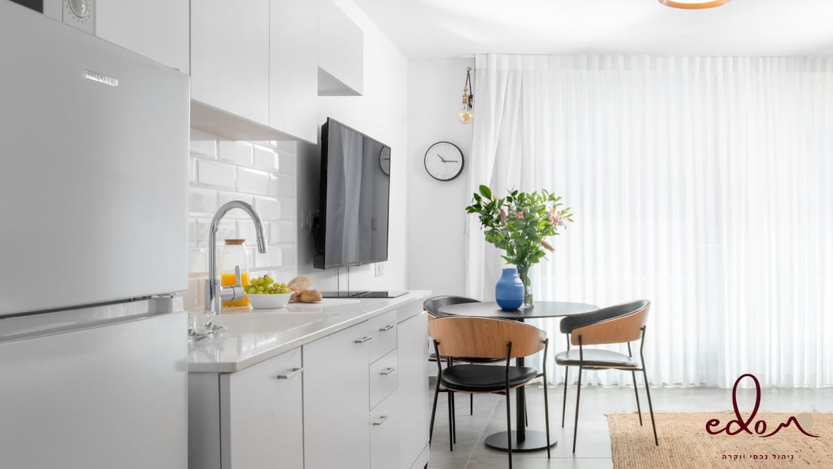 ¡Bienvenido a tu refugio perfecto en Eilat! Este agradable y elegante departamento boutique incluye un dormitorio y está especialmente diseñado para la comodidad y la relajación. Ubicado en el tranquilo y codiciado barrio de Shahmon, el apartamento ofrece una experiencia de alojamiento tranquila con fácil acceso a todo lo que Eilat tiene para ofrecer.