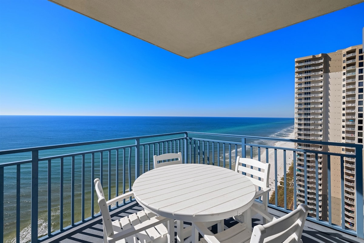 This 270-degree Observatory corner condo on the 25th floor offers breathtaking coastal beache views for miles. Located in the tallest building in PCB, Tidewater Beach Resort, this unique unit allows you to enjoy beautiful sunsets from right from the living room sofa or dinner table. At night, you'll be treated to the dazzling city lights on one side and the enchanting starlight and moonlight over the ocean on the other. The resort boasts several pools, a free spa, a gym, and private beach access