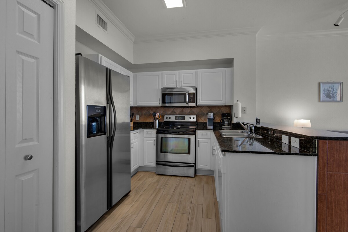 Lo más destacado que te encantará: • Condominio frente al golfo con vistas panorámicas a la costa. • Balcón privado de gran tamaño para cenar y descansar. • Servicio de silla de playa gratuito incluido (2 tumbonas + sombrilla, de marzo a octubre). • Capacidad para 6 personas: dos dormitorios tamaño king más una alcoba con dos literas. • Dos baños completos para mayor comodidad y privacidad. • Televisores inteligentes en todas las habitaciones + televisor inteligente grande en la sala de estar. • Cocina totalmente abastecida con barra de café/té y suministros generosos. • Lavadora/secadora en el alojamiento con artículos de lavandería de arranque • Servicios del complejo turístico:
