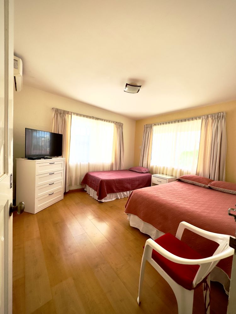 Situada en céntrico y tranquilo vecindario, a dos cuadras del acuario. Hermosa propiedad de dos pisos, muy amplio jardín y cochera para un carro. Tres habitaciones con aire acondicionado, dos baños enteros, un medio baño y un baño entero de servicio; sala, comedor, desayunador y terraza. Cuenta con cocina integral, refrigerador, horno de microondas, cafetera, una television, lavadora y señal de wi-fi.