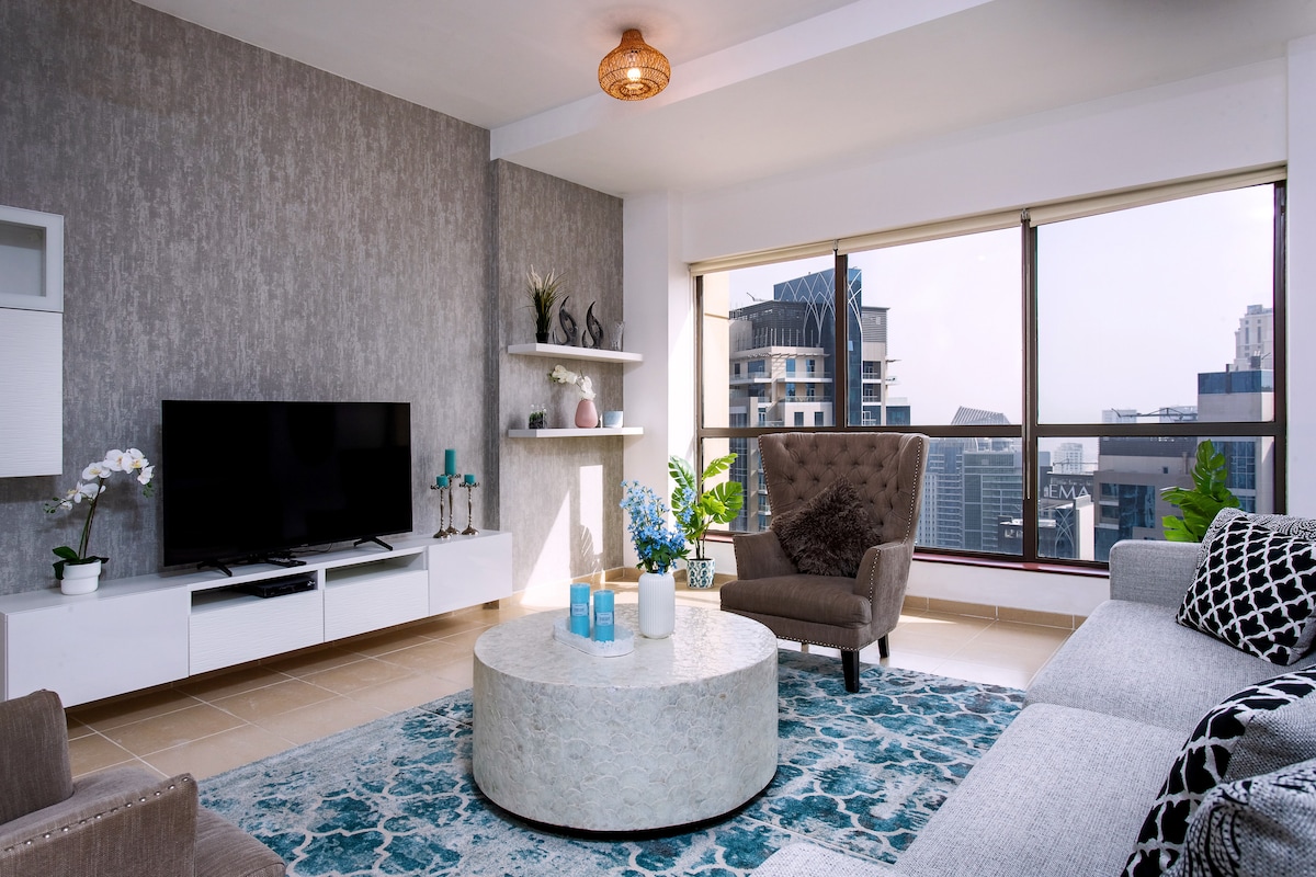 Relájate y desconecta en este tranquilo y elegante apartamento de un dormitorio con vistas al puerto deportivo de Dubái y al mar Arábigo. Este edificio de apartamentos frente al mar se encuentra en el puerto deportivo de Dubái y los huéspedes pueden hacer uso de las instalaciones de alta gama como la piscina y el gimnasio. El paseo marítimo de la Marina está a la vuelta de la esquina y ofrece a los huéspedes opciones de deliciosas cafeterías, restaurantes y pequeños comercios. La playa JBR y la isla Bluewaters también están a poca distancia.