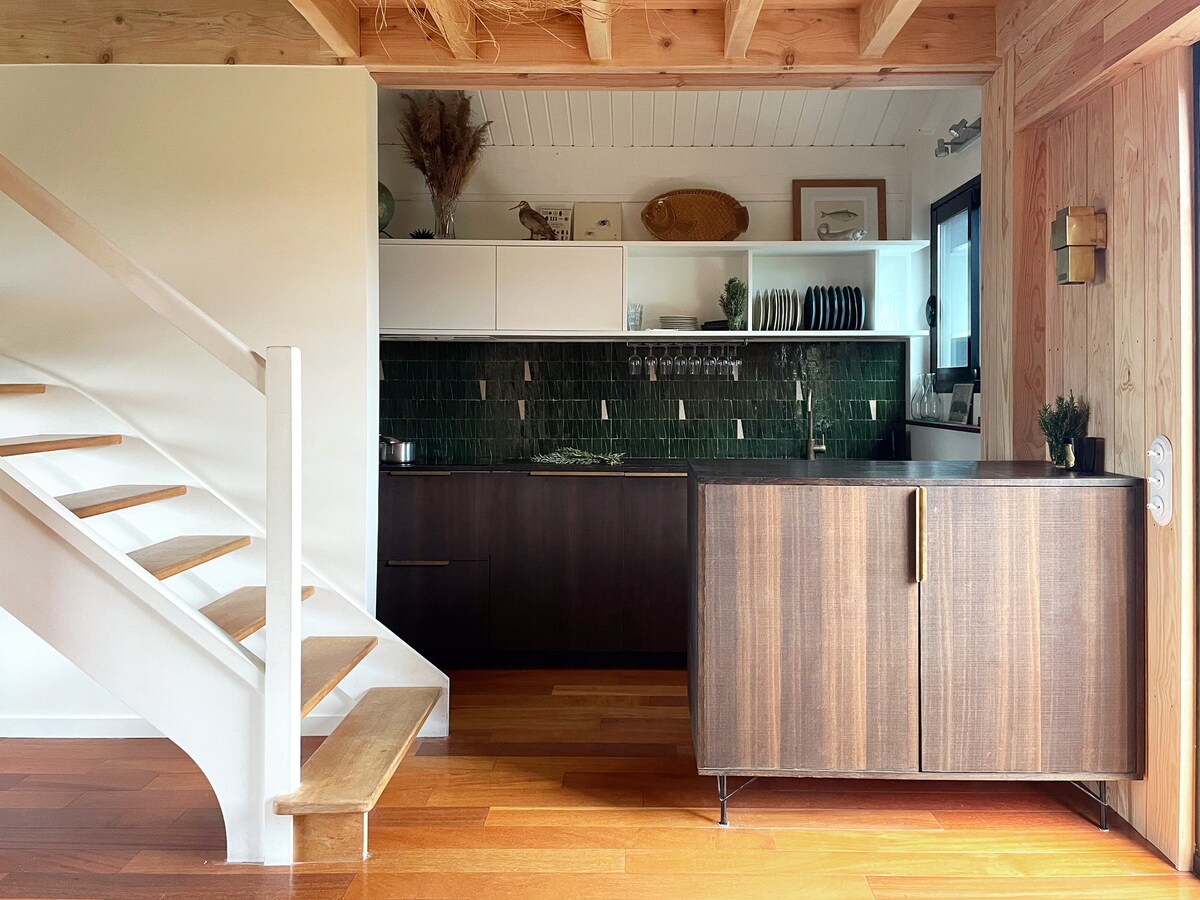 Apartamento en primera línea de la cuenca de Arcachon, entre el mar y el bosque. Los Jacquets península de Cap-Ferret. En el primer piso de una casa de madera de 2013, en un camino privado. Acceso directo a la playa. Aire acondicionado con todas las comodidades 60 m². 1 dormitorio cama Queen-size colchón de látex natural, cuarto de baño, inodoros, lavandería lavadora, equipo BB, secadora, gran sala de estar-salón-cocina con 1 cama-armario Queen-size. Cocina equipada con horno eléctrico, placa de inducción, microondas, lavavajillas, heladera. TNT WIFI.