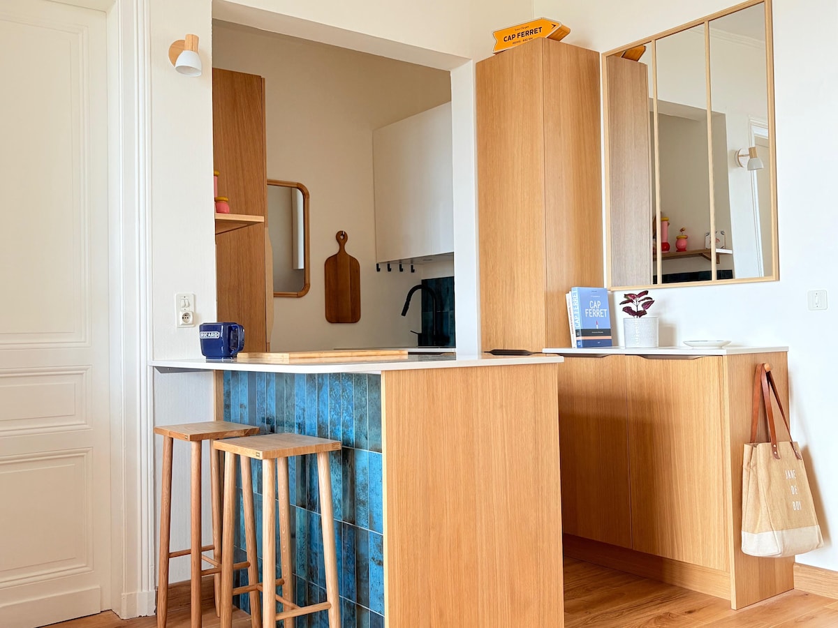 Apartamento de 45 m2 en la cima de la ciudad de invierno con vistas panorámicas a la bahía de Arcachón. Tranquilo en una casa antigua y un entorno verde a 5 minutos del centro y las playas. Volúmenes espaciosos y elegantes, estacionamiento privado, balcón amueblado, ropa de cama de hotel queen size (160), instalaciones recientes, cuaderno de buenas direcciones y detalles refinados… Hemos pensado en todo con cuidado para su comodidad. Solo tiene que dejar sus maletas y pasar unas excelentes vacaciones en nuestro paraíso