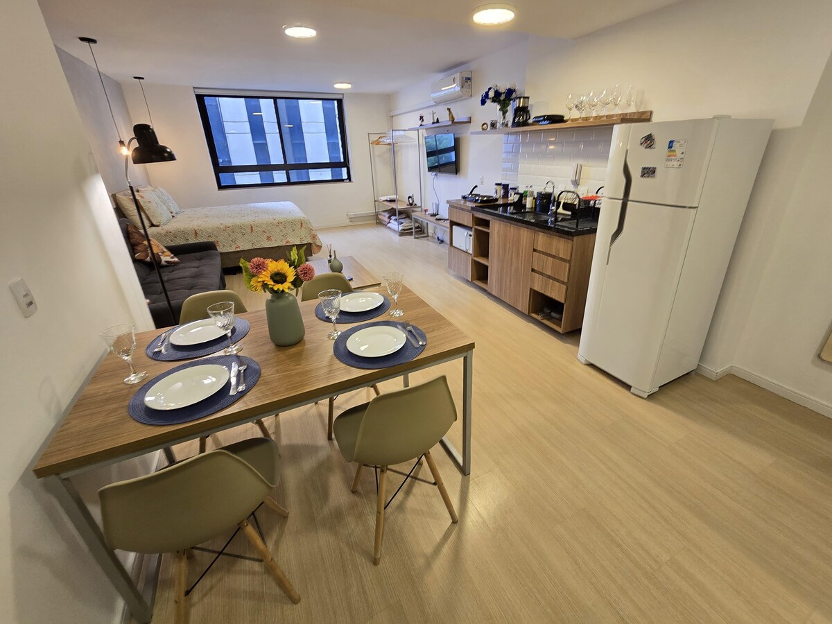 Estudio moderno con cama queen a 200 metros de la playa