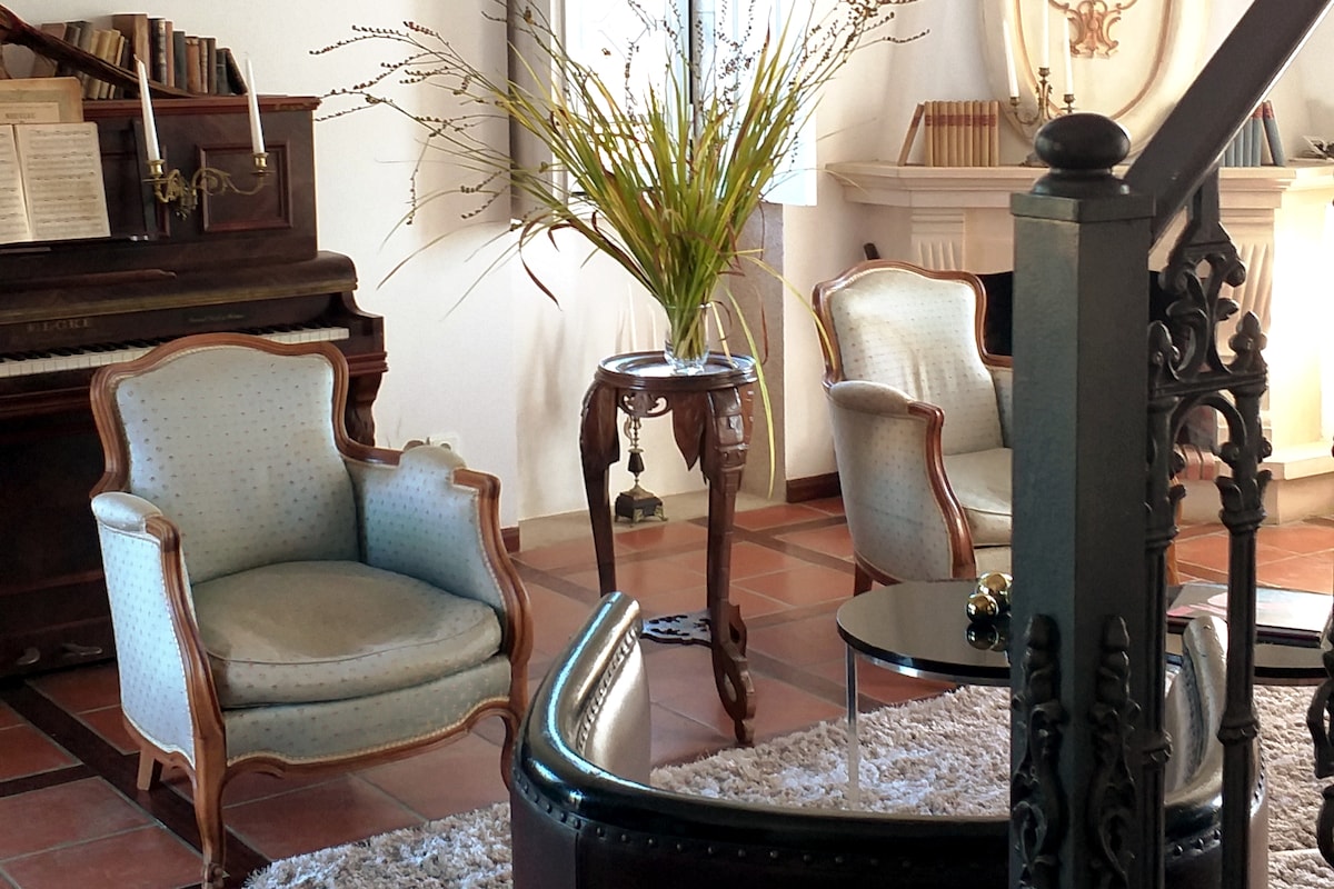 Alójate en una torre única e histórica y vive una experiencia inolvidable. Este espacio exclusivo forma parte de una casa solariega centenaria, rodeada de jardines románticos, viñedos y vistas impresionantes a las montañas. Aquí encontrarás tranquilidad, naturaleza y comodidad. Disfruta: Piscina con vistas panorámicas Jardines, gruta, lago y mirador Espacio totalmente remodelado con encanto histórico Aire acondicionado y wifi rápido Cocina totalmente equipada. Ambiente tranquilo y relajado