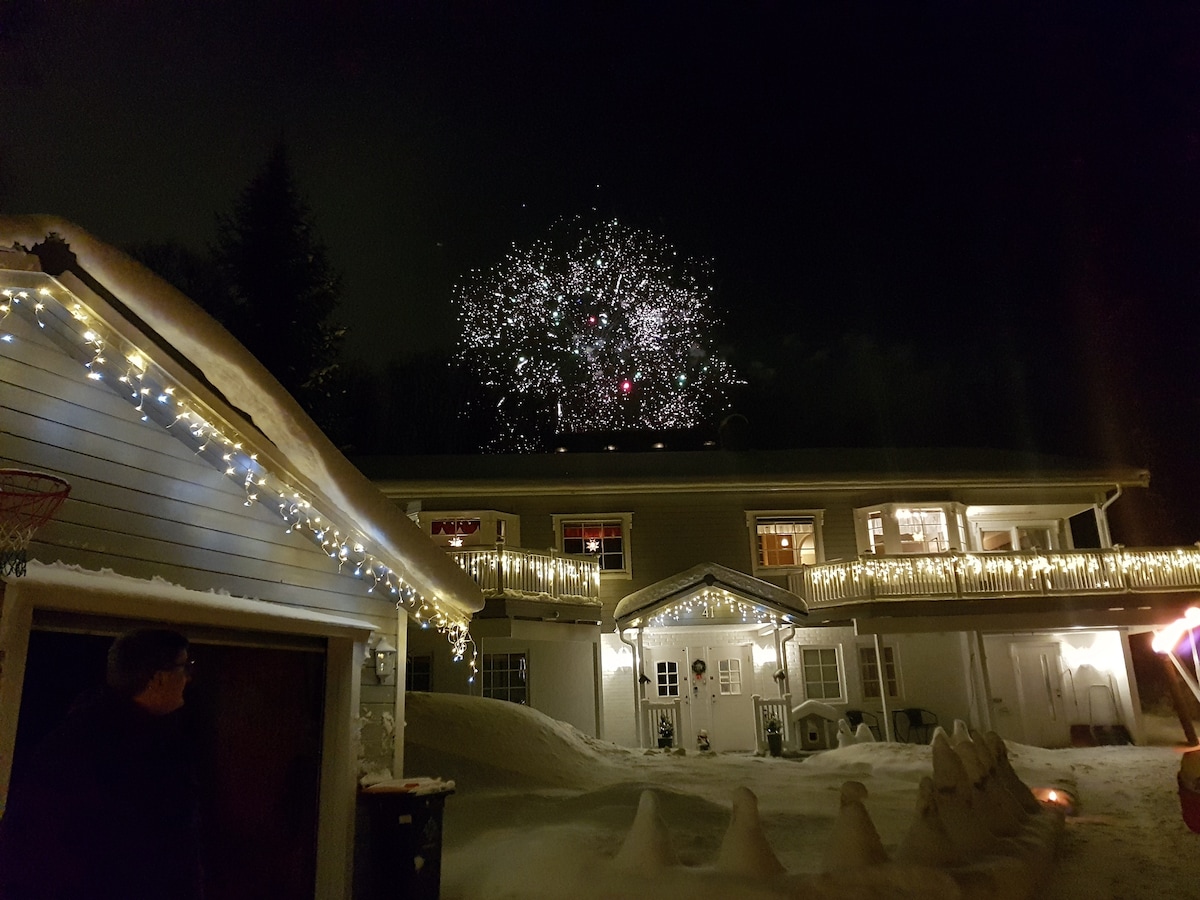 Apartamento independiente, sencillo y tranquilo situado en el último piso de nuestra casa familiar. A 15/20 minutos a pie del centro de la ciudad, a 5 minutos de las zonas al aire libre de Tromsø. Aparcamiento en el sitio. Un dormitorio con una cama de matrimonio y un sofá cama en la sala de estar. Salón, cocina totalmente equipada y baño con bañera. Estaremos encantados de recibirte y guiarte durante tus vacaciones en Tromsø, no dudes en ponerte en contacto con nosotros. ¡Te damos la bienvenida a Senjavegen!