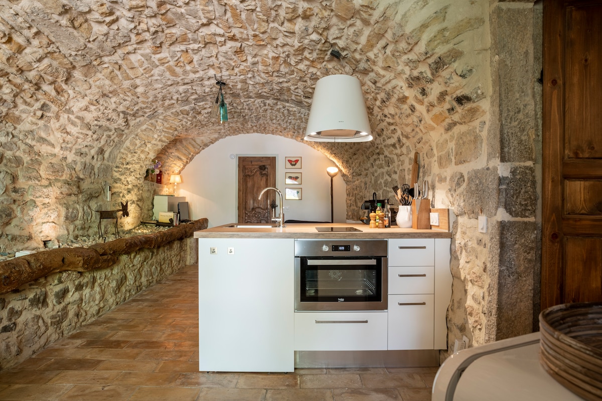 Turismo amueblado de 4*: 65 m2 en un entorno verde. La terraza privada da a un bosque de robles y pinos con vistas a las colinas. Un dormitorio con una cama grande (calidad hotelería) y un baño en suite + una cocina abierta totalmente equipada y con vistas a una sala de estar con 2 bancos-cama individuales. Equipamiento completo, piscina compartida con los propietarios Estaremos encantados de hablar de buenas direcciones de la zona si los viajeros lo desean.