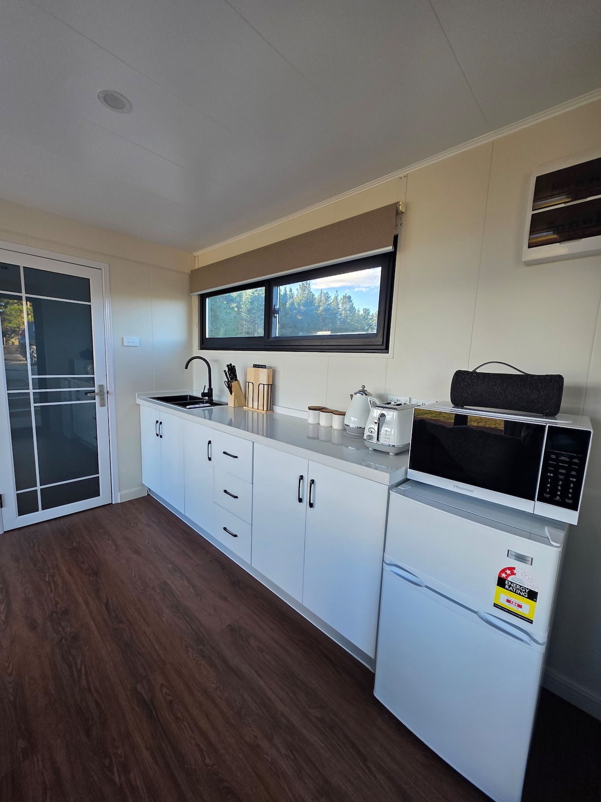 Te damos la bienvenida a nuestra unidad autónoma de nueva construcción en nuestra granja de ovejas de Southland. La unidad es un lugar mágico donde estás completamente separado y privado. Contiene una cama tamaño queen, una pequeña cocina con una placa de cocción y microondas. Hay un gran baño bien equipado y una bonita zona privada al aire libre para disfrutar de una bebida, ponerse al día con los correos electrónicos o leer un libro.