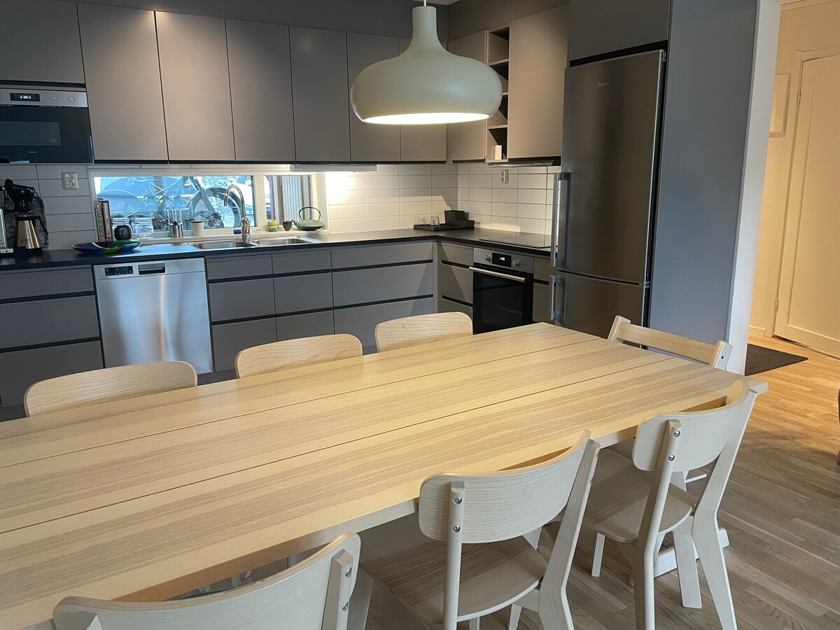 Åre Björnen: Departamento espacioso y moderno de 90 m2 en la mejor ubicación para tomar el sol (suroeste) con grandes ventanales con vistas tranquilas a Åredalen. Perfecto para la gran familia de esquiadores/senderistas. Disfruta después de un día en las montañas en la gran sala de estar que tiene una chimenea, un amplio grupo de sofás y, por último, pero no menos importante, una gran mesa de madera alrededor de la que todos pueden reunirse o sentarse en la terraza y disfrutar de la puesta de sol sobre Åredalen. Después de los días de esquí frío, toma una sauna en nuestra exclusiva sauna recién construida.