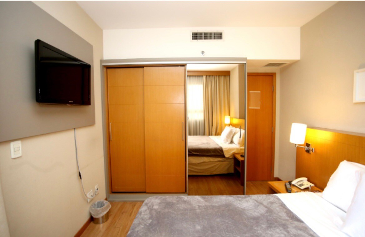 Aparthotel super confortável bem no centro de Brasília. Hotel com serviço de quarto diariamente, restaurante, piscina, academia, sauna, centro de convenções, shopping Brasília so atravessar a rua. A menos de 3 km. da esplanada dos ministérios, próximo aos principais pontos turísticos da cidade para trabalhar, descansar ou fazer turismo. Venha desfrutar da Capital Federal.