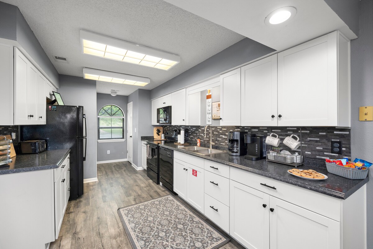 Te damos la bienvenida a Sweet Serendipity: una escapada romántica en el bosque Comodidades de lujo: 🧖Sauna de barril con accesorios 🔥Fogata con gran sofá cama, hamaca y sillas ♨️Terraza trasera privada con sofá modular, jacuzzi y chimenea al aire libre ☕Cafetería totalmente surtida 🥇Juego de cornhole con Koozies de cortesía 💪Equipo de ejercicio: colchonetas y bloques de yoga Lululemon, 2 mancuernas ajustables de 25 lb, bandas de resistencia, cuerda para saltar con peso y rodillo de espuma 🏞️Equipo para exteriores: bastones de senderismo, cañas de pescar y accesorios