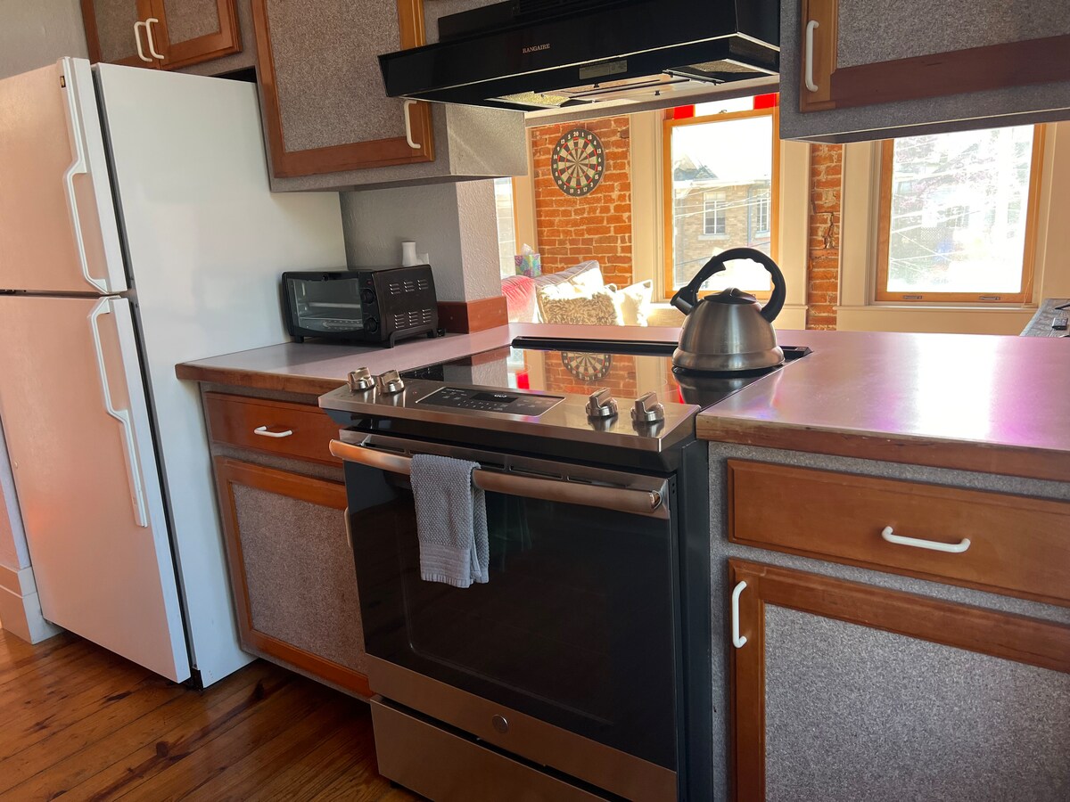 THE LOFTS at VAULT – Suite 402 Impresionante loft rústico y moderno de un dormitorio con cama tamaño queen y sofá cama tamaño queen. Cuenta con una cocina completa en un edificio de 1890 bellamente restaurado. Ubicado en el cuarto piso sobre el restaurante VAULT de 5 estrellas de Hot Springs, en el corazón del centro histórico y a minutos de Oaklawn. Propiedad para no fumadores, sin mascotas, con estacionamiento en la calle y acceso reservado al estacionamiento. Una mezcla perfecta de encanto, estilo y comodidad.