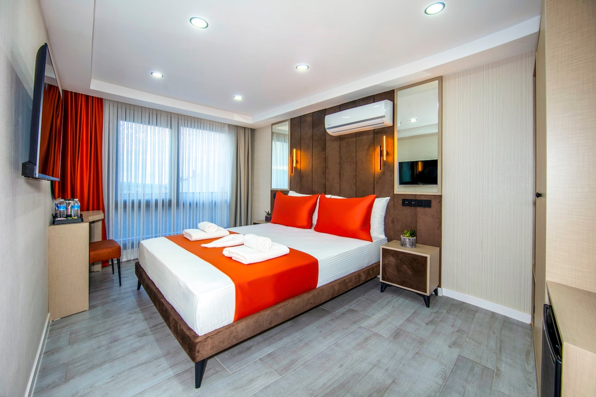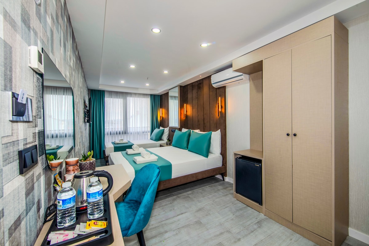 Situado en Arnavutköy, Estambul, a solo 10 minutos del aeropuerto, nuestro hotel es una gran opción tanto para estancias de negocios como de placer. Nuestras 48 cómodas habitaciones ofrecen servicio con capacidad para recibir huéspedes de 1 a 5 personas. Nuestro hotel está encantado de darte la bienvenida con su diseño moderno. Puedes comenzar el día fresco con nuestro desayuno buffet entre las 07:00 y las 10:00 de la mañana, disfrutar de una deliciosa comida en nuestro restaurante de bebidas alcohólicas durante el día (tarifa de desayuno).