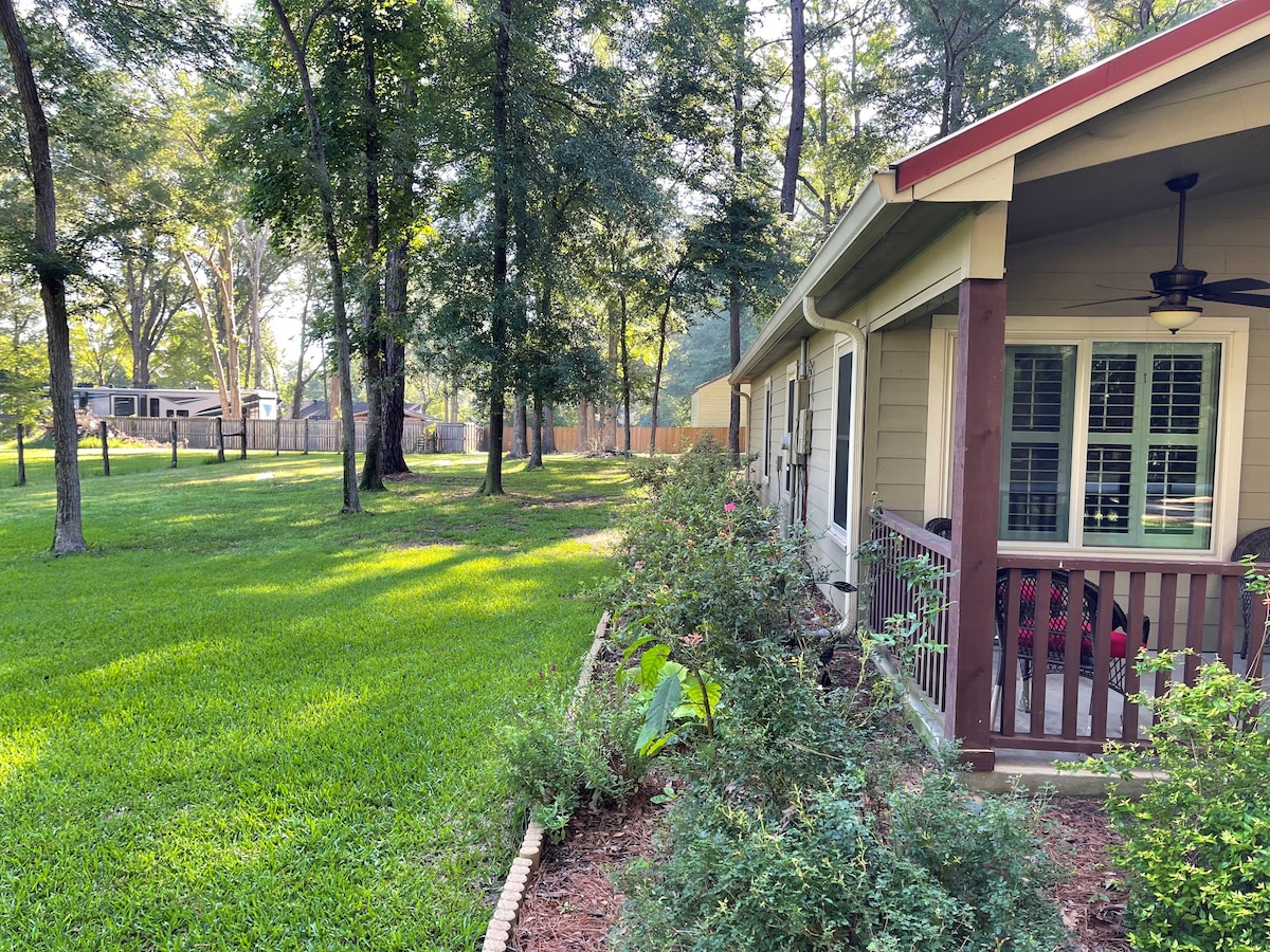 Relájate en este espacio tranquilo y elegante. Esta pequeña casa fue construida en 2022. Situado en casi 5 acres con un estanque, ¡este lugar es el significado de relajarse! Disfruta de tu tiempo con una hermosa vista y relájate del mundo exterior. ¡Hay muchas opciones para cenar, entretenerse y comprar a pocos minutos en auto! Si quieres reservar un evento, consulta las reglas de la casa y, en las reglas adicionales, encontrarás los términos y el acuerdo para reservar eventos.
