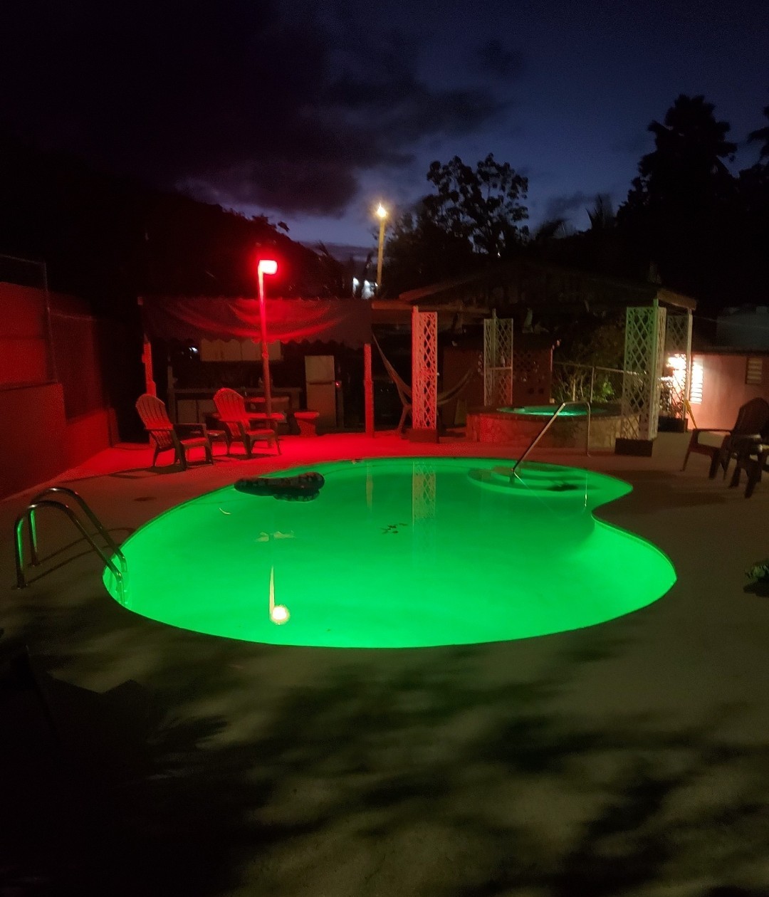 2 bedroom apartments with 2 queen beds and 1 futon in the living room. Mountain and ocean views from the balcony. Parking space, small 8x10 pool 4 ft and a step from the apartment with beautiful view of the mountains. If the fruits are ripe please feel free to enjoy fresh mango, passion fruit, papaya soursop,pomegranate and banana to pick yourself from the backyard. ** CHILDREN UNDER THE AGE OF 13 ARE NOT ALLOWED IN THE POOL UNSUPERVISED BY AN ADULT**
