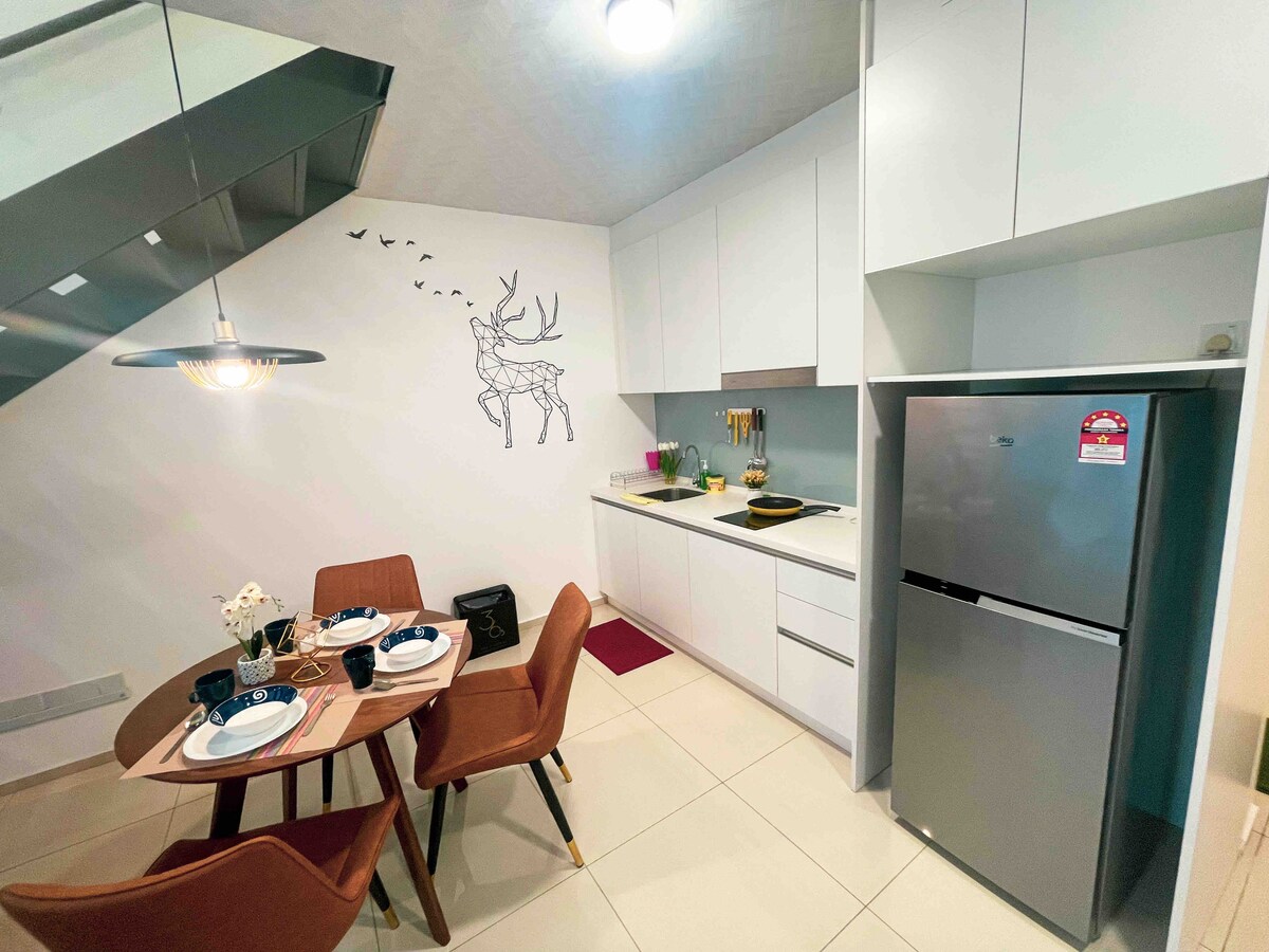 歡迎來到Airbnb Ekocheras。这是一间吉隆坡市中心Cheras的中央商務區的複式套房。楼下LG就是Eko Cheras Shopping Mall可以轻松前往超市,餐厅,电影院等等 步行5分钟可到地铁站 开车到任何的商场都很靠近 10.3公里13分钟👉吉隆坡城中城 12.5公里16分钟👉MidValley 8.7公里19分钟👉柏威年广场 7公里10分钟👉Lalaport 4.6公里7分钟👉velocity 20.8公里21分钟👉Sunway Lagoon 21.5公里27分钟👉One U 👉🏻High Floor Unit With KlCC View 房源内备有📝 -Wifi -Nanoleaf Lights -Mashell Speaker -Projecter With Netflix Account -电视机 -LG饮水机(冷水/热水)✔️ -微波炉 -吹风机 -冰箱 -湿干冼衣机 -國際旅遊轉換器 -2张毛巾,2张面巾,淋浴乳/洗发露 -提供一个免费停车位 入住3pm 退房12pm
