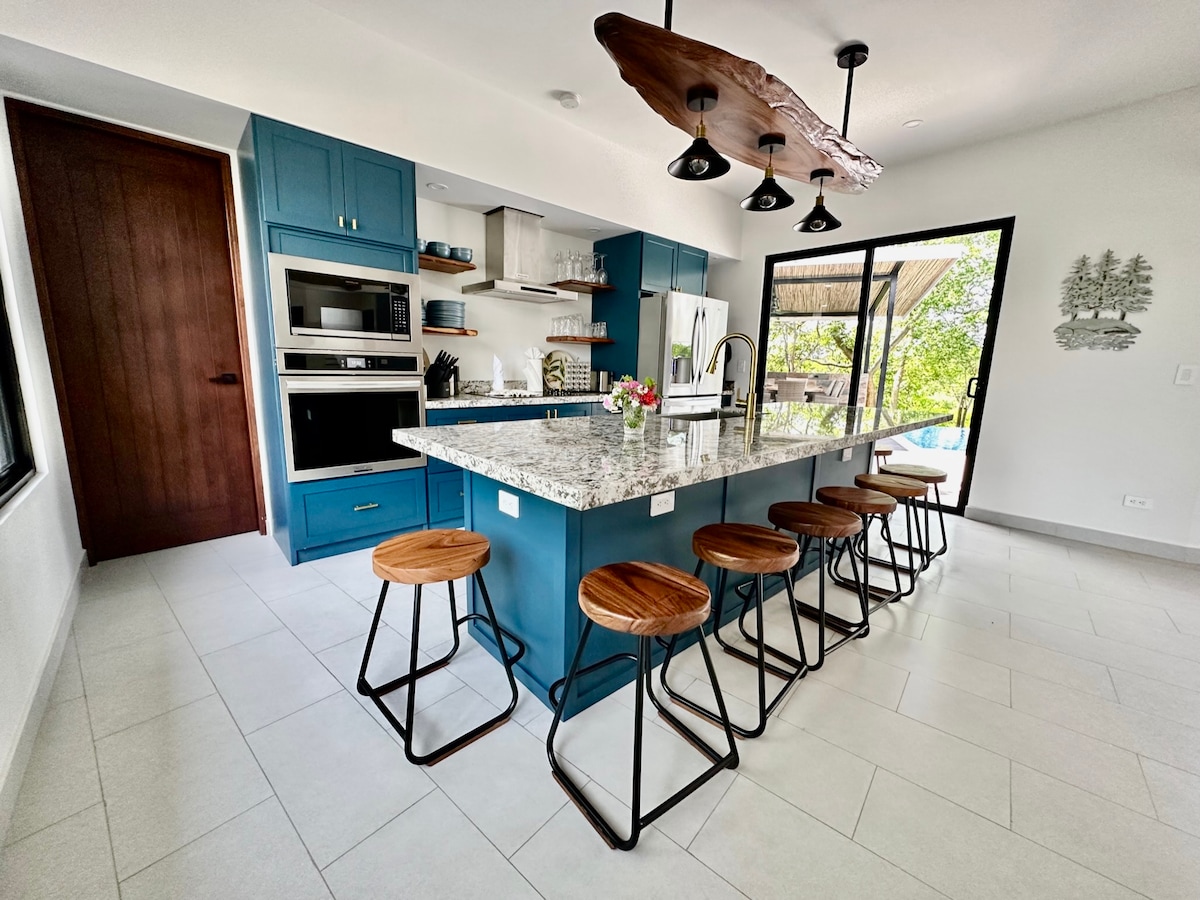 ¡Una de las mejores vistas al mar y a la montaña de Playas del Coco! ¡Damos la bienvenida a todos! Perfecto para parejas, familias y trabajadores remotos. Casa totalmente equipada, ubicada en la cima de una montaña dentro de una comunidad cerrada, a 10 minutos a pie de la playa. Tiendas de comestibles, restaurantes y tiendas cercanas. A poca distancia en coche del aeropuerto de Liberia (20 minutos). Disfruta de un concierto de pájaros y monos cada atardecer y amanecer, espectaculares vistas de las puestas de sol de Playas del Coco. ¡Cerca de la naturaleza, pero no muy lejos de los servicios!
