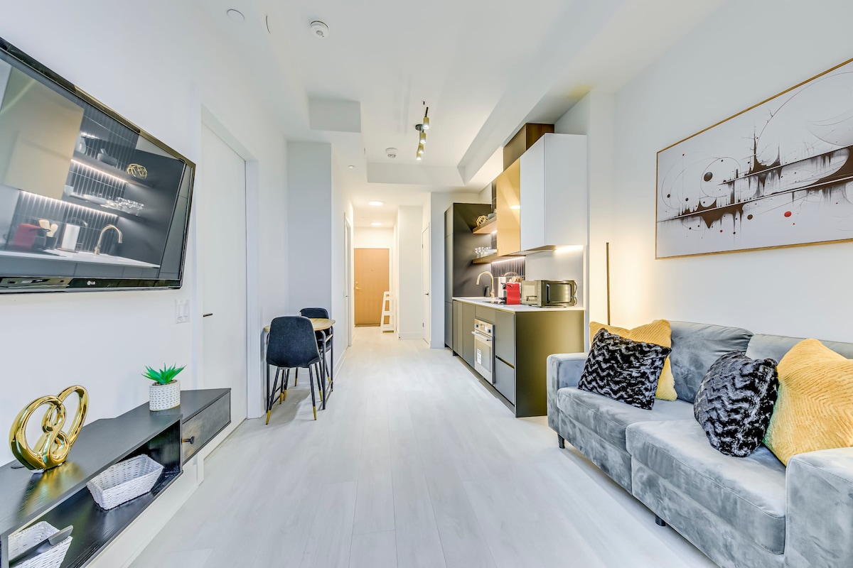 Disfruta de un apartamento de 1 dormitorio recién construido, diseñado profesionalmente y espacioso en el sótano en East York Toronto. Convenientemente ubicado cerca de Danforth, Woodbine Beach, parques y senderos, el apartamento está a un corto trayecto en autobús/metro o a 15 minutos en coche del centro de Toronto. Independiente y espacioso, ofrece una cocina totalmente equipada, nuevas instalaciones de lavandería, una cama tamaño queen, amplio espacio de almacenamiento y mucha luz natural.