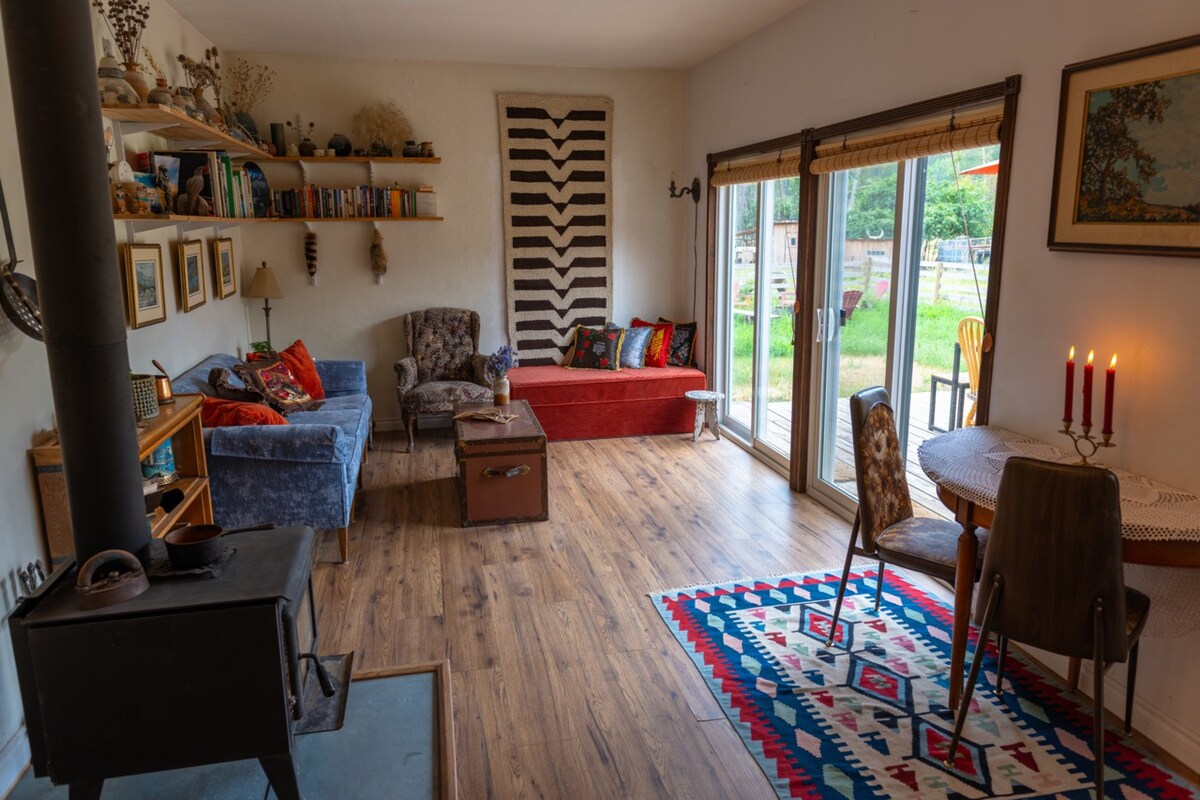 Celestial Garden Cottage se encuentra en el centro de Ashcroft, construido en 1911 y uno de los edificios más antiguos de la ciudad. Disfruta de las vistas del río Thompson desde esta peculiar y ecléctica casa de campo de estilo "paycheque" con 2 dormitorios, 2 baños, cocina completa con un sofá cama doble para una tercera zona de dormitorio y jardín privado cercado con patios cubiertos para observar aves, el cielo y trenes. La casa de huéspedes Black Cat se encuentra al lado. **prepárate, revisa Drivebc para conocer las condiciones de la carretera y el clima**